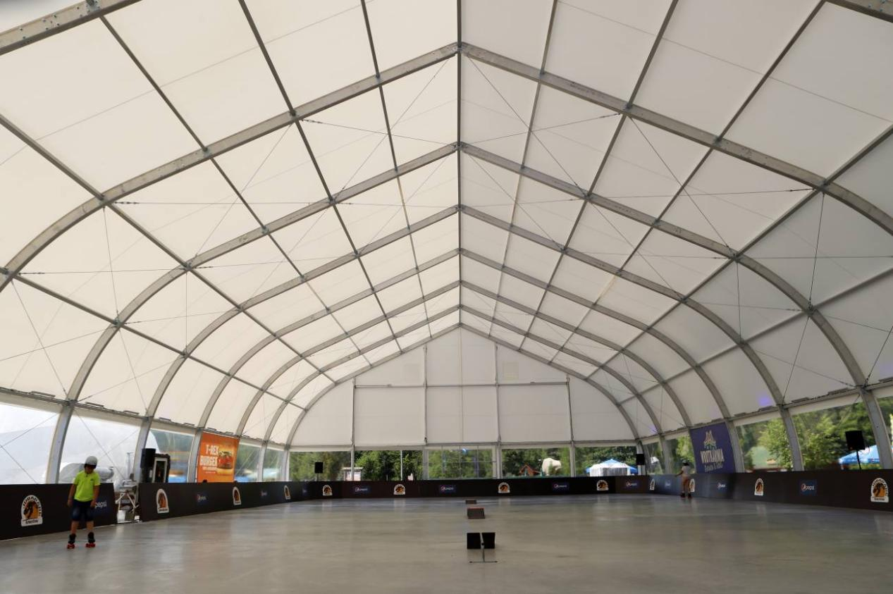 體育賽事篷房的魅力并不全在于外觀,更在于便捷性。對于不同場地的大小,可以自由組合篷房的間數(shù)和不同賽事的需求。對于場地的地面無論是沙地,草地,水泥地還是如大理石那樣不可破壞的地面,體育賽事篷房可以用膨脹螺絲、鋼釬以及承重盤,使篷房能夠安全穩(wěn)固的進行搭建和使用,保證體育賽事的順利進行。